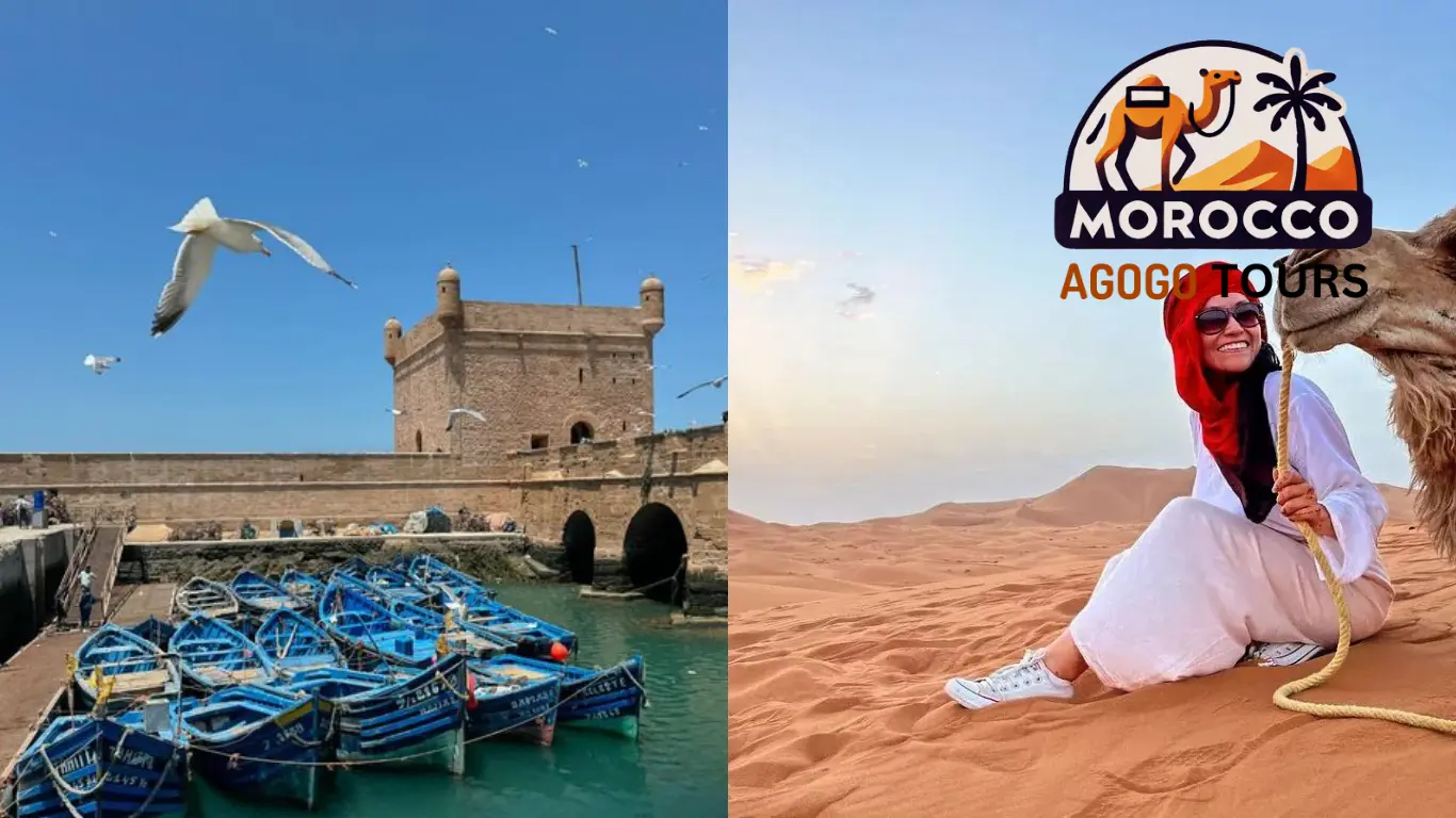 Today, we visit Essaouira, a beautiful city by the coast. It features white buildings, a busy harbor, and sandy beaches. On our way, we stop to see argan trees. Goats climb trees to eat fruit. We also visited a women’s group that makes high-quality argan oil, a local specialty. When we arrive in Essaouira, we see the Skala Fortress and walk through the colorful alleys of the medina. We also visit art galleries that show local crafts. You can eat fresh seafood at the busy harbor or relax on the beach. Optional activities include riding camels along the shore or windsurfing. Essaouira is a calm place to relax after visiting the desert and cities. We arrive at a riad in the evening to enjoy a quiet night’s sleep.