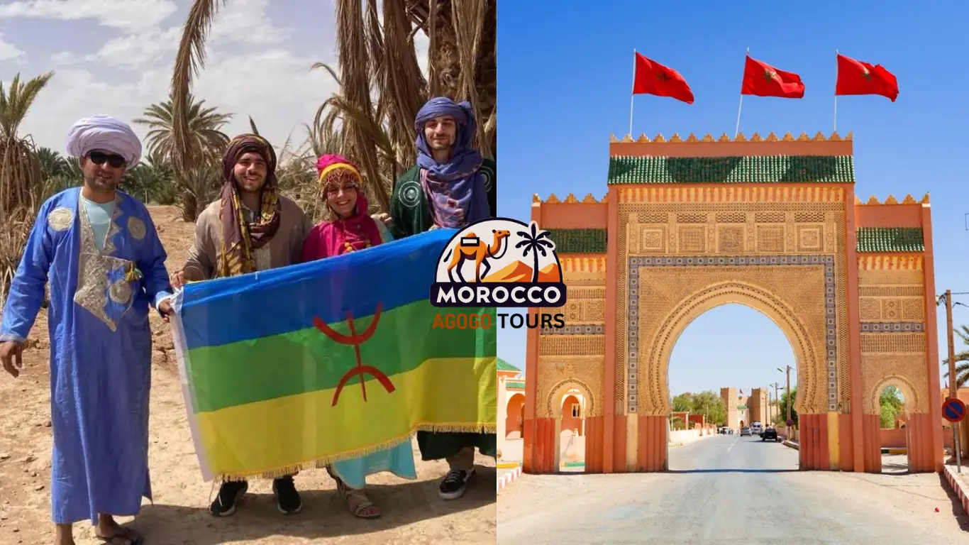 We start our 3-day Fes to Marrakech desert tour with a scenic drive through the Middle Atlas Mountains. Our first stop is Ifrane. This town is known as the Switzerland of Morocco because it has a cool climate and buildings that look like those in the Alps. Next, we visit the Cedar Forest of Azrou, where you can meet and feed Barbary macaques. After lunch in Midelt, we continue through Ziz Valley. This area is famous for its green date palm trees and beautiful views. In the afternoon, we will reach Merzouga. You will go on a camel ride to see the sunset over the tall Erg Chebbi dunes. This magical ride takes you to a luxury desert camp. You can have a traditional Moroccan dinner under the stars and enjoy Berber music around the campfire. Overnight stay in a luxury Berber camp in Merzouga.